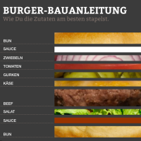 Sind die Pattys sogut wie gar, den Käse drauflegen und ein paar Sekunden anschmelzen lassen. Zu diesem Zeitpunkt sollte man das untere Bun (Brötchen) schon mit allem belegt haben, was unter das Fleisch kommt. (Tipp: Den Bacon mit etwas Küchenpapier von triefendem Fett befreien).