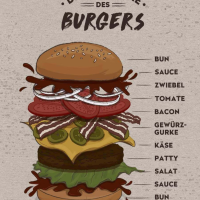 Vorab, bei der Zubereitung von Hamburgern gibt es keine Dogmen, jeder kann und sollte nach seinem eigenen Geschmack die Zutaten variieren. Dies ist nur ein Vorschlag wie man es machen kann.
