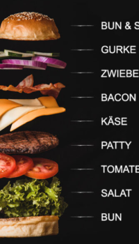 Vorab, bei der Zubereitung von Hamburgern gibt es keine Dogmen, jeder kann und sollte nach seinem eigenen Geschmack die Zutaten variieren. Dies ist nur ein Vorschlag wie man es machen kann.