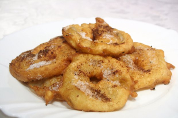 4 Stk Äpfel 3 EL Zucker 1 TL Zimt 500 g Kokosfett zum Ausbacken Zutaten für den Teig 3 Stk Eier 190 g Mehl 200 ml Milch 30 g Zucker 1 Prise Salz